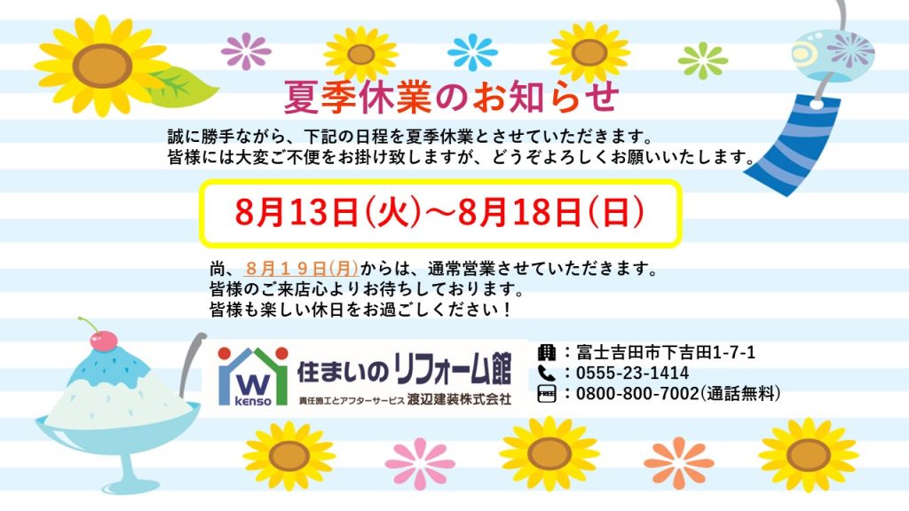 🍧🌻夏季休業のお知らせ🎐🎆