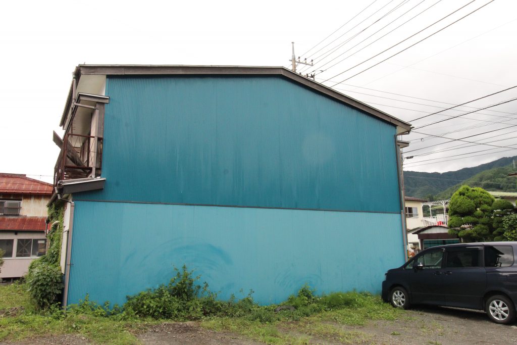 倉庫の2階部分の外壁でしたので足場を組み、既存の波板・サッシを撤去し、防水シートを入れ新しい波板を取付けました。