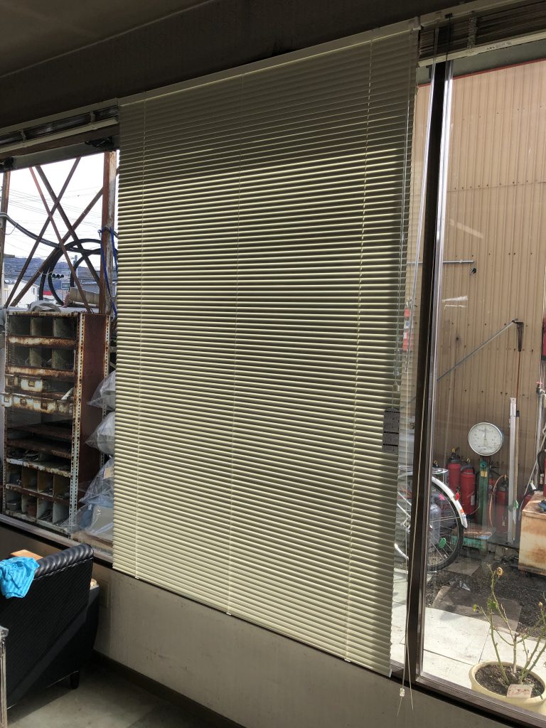 ブラインド修理のご依頼のお電話をいただき、現調させていただくと操作する紐が劣化し切れてしまっていたのでブラインドの交換をご提案させていただきました。