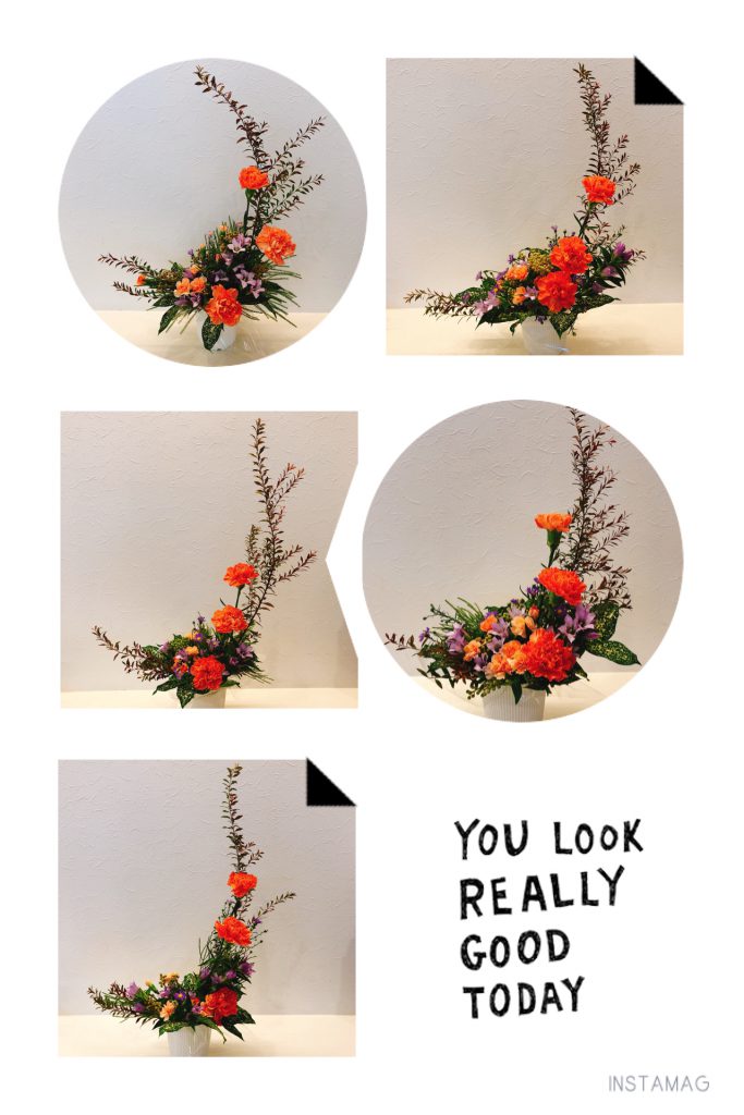 盛り沢山の花材で季節感あるアレンジなので毎回大好評です。