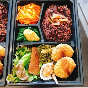 ☆酵素玄米 ☆にんじんサラダ ☆根菜コロッケ ☆切り昆布の煮物 ☆生野菜