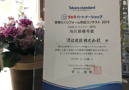 『家事らくリフォーム作品コンテスト 2019 』地区最優秀!…