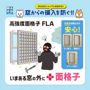 【高強度面格子】を取付けることで、視覚的な抑止力にもなります🎶