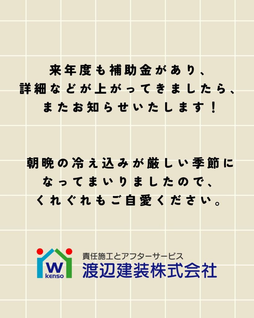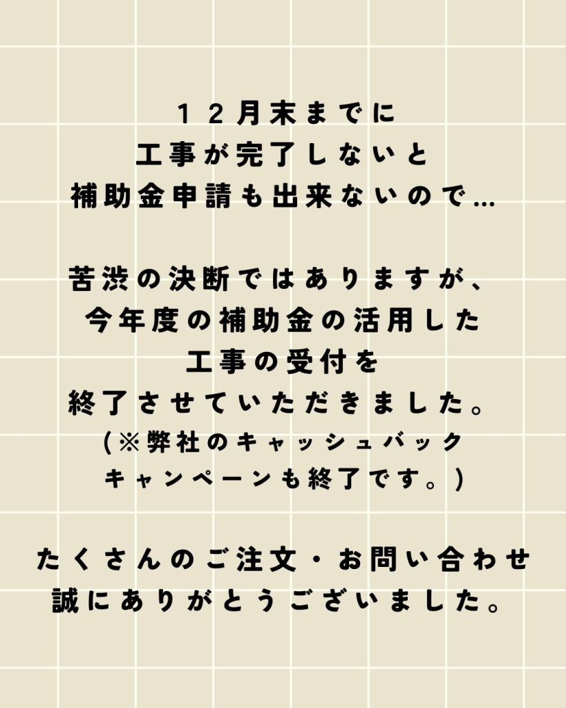 補助金活用工事の受付終了のお知らせ🙇♀️