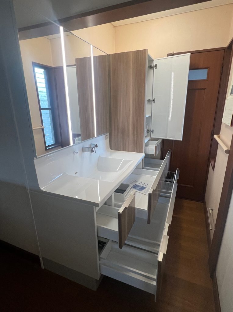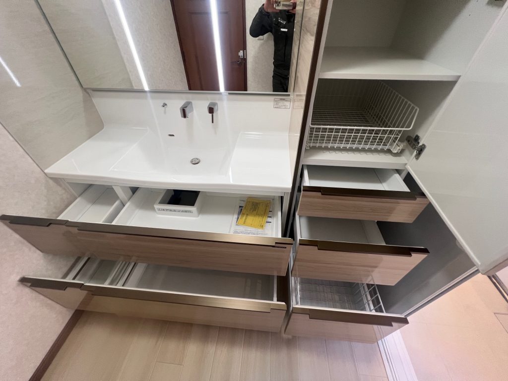 たっぷり収納があり使い勝手も良い洗面化粧台☺️
