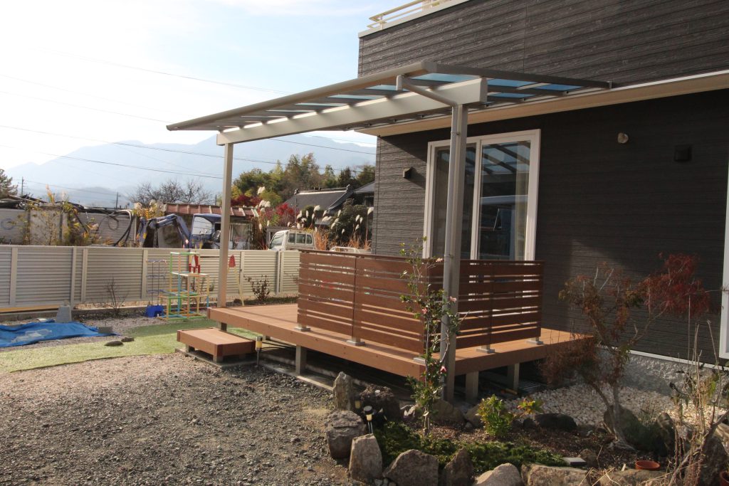 日差しを遮りデッキ上を快適にするテラス屋根👍