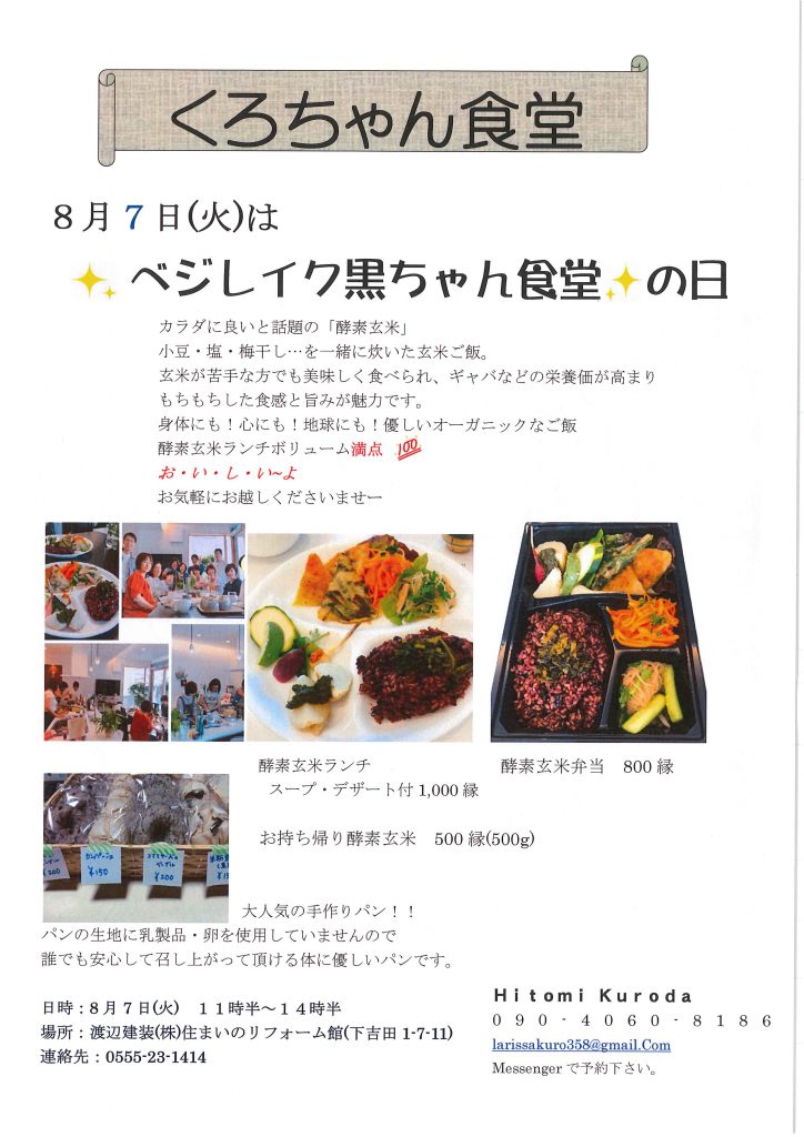 お料理に込められた黒ちゃんの愛情たっぷりのランチを食べに来ませんか!