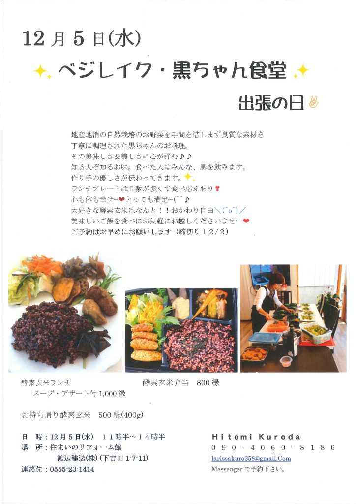 今年最後の「ベジレイク・黒ちゃん食堂」お楽しみに💕