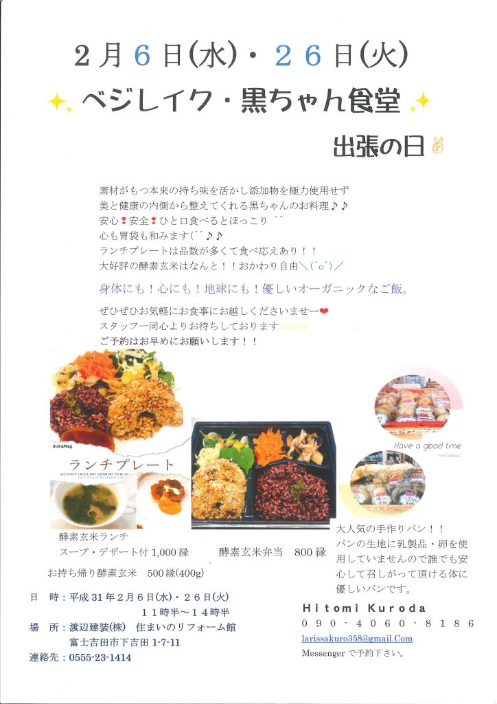 2月の✨ベジレイク黒ちゃん食堂✨日程決まりました!!~