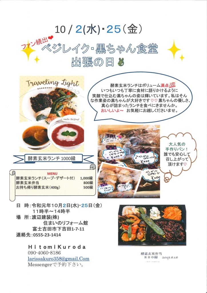 ✨ベジレイク・黒ちゃん食堂✨出張の日✌のご案内