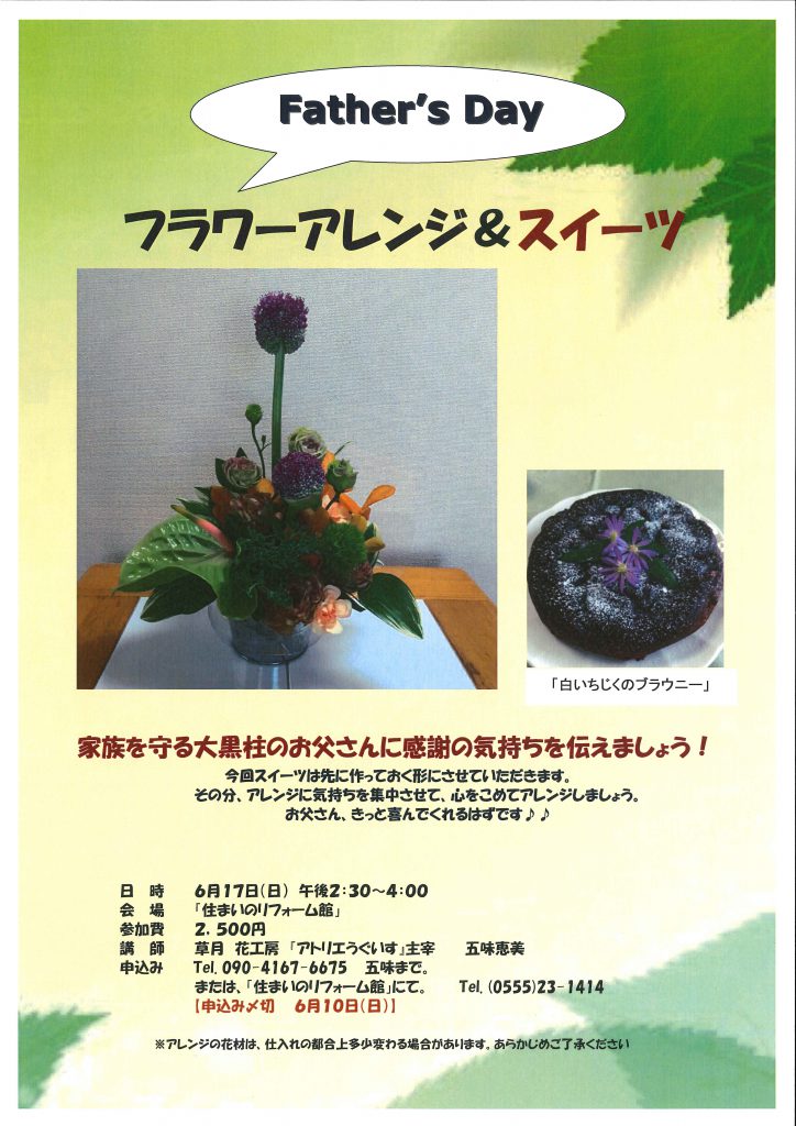 当リフォーム館において人気のフラワーアレンジ教室です。