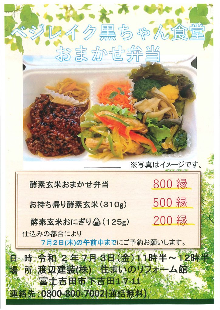 ✨ベジレイク・黒ちゃん食堂『おまかせ弁当』販売!!
