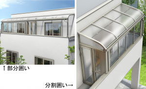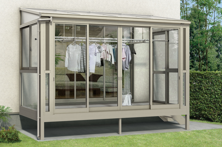 | 基本仕様 | 『テラス屋根・バルコニー屋根』を取付けることで・・・ 今まで生かせていなかった空間が便利・快適に!! 例えば「2階のバルコニー」便利な物干し場に生まれ変わります。 天気を気にせず洗濯物を干せます。急な天候変化・雨降りの日も洗濯物が濡れないので安心!!これから迎える梅雨の時季や秋の長雨にあると大変便利です。 テラスやバルコニー屋根としてだけではなく、勝手口の屋根や店舗の入口にも。使い勝手のよさが魅力!! 『テラス囲い・バルコニー囲い』屋根付き、大きな窓で囲まれているので窓を閉めれば・・・ 雨降りの日も洗濯物が濡れないので安心です。 花粉や黄砂が付着するのを軽減できます。 寒い晴れの日、薄日の日は陽射しでポカポカ!冬の洗濯にも最適です。 もちろんお布団などの大きな物も干せます。 晴れた日には窓を開けると、陽射しと風で洗濯物もしっかりと乾きます。 いろいろな困りごと・おなやみごとがこれで解決!!間違いなし!!! |