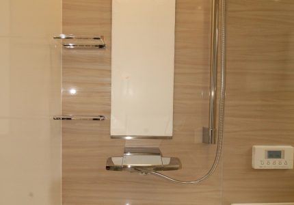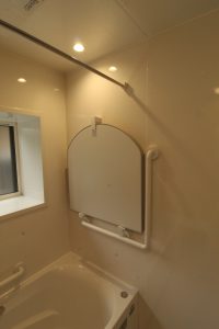 老後の事を考えて【安心ハンドバー】を取付け、浴室内の立ち座り・移動動作をサポート。