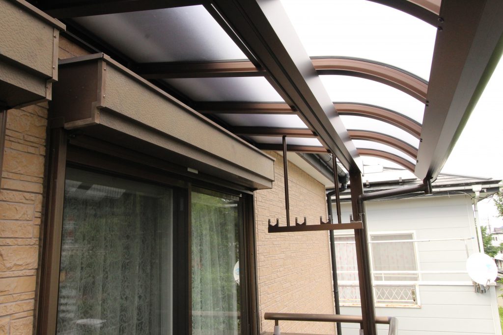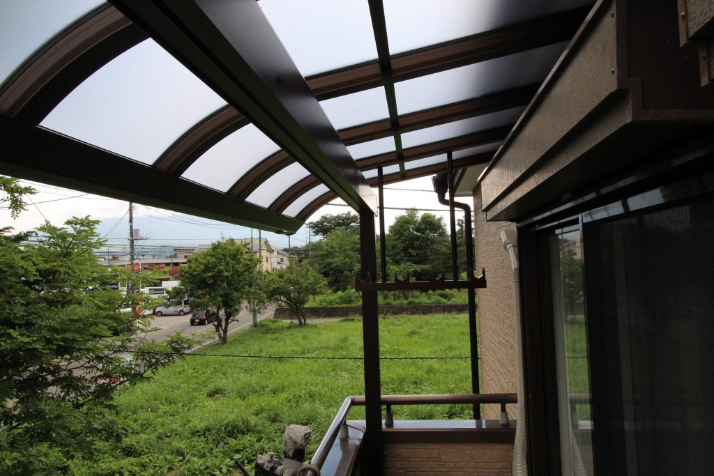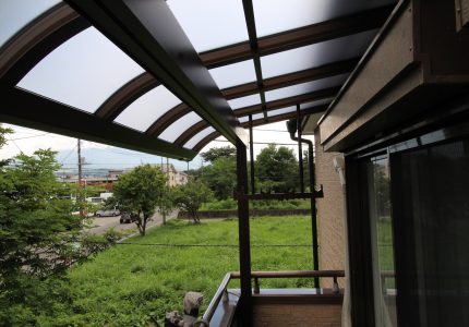冬場、家の屋根から雪がベランダに落ちてこないように屋根を取付けたいとご依頼いただきました。