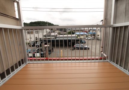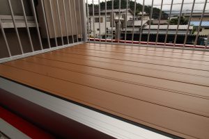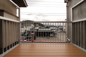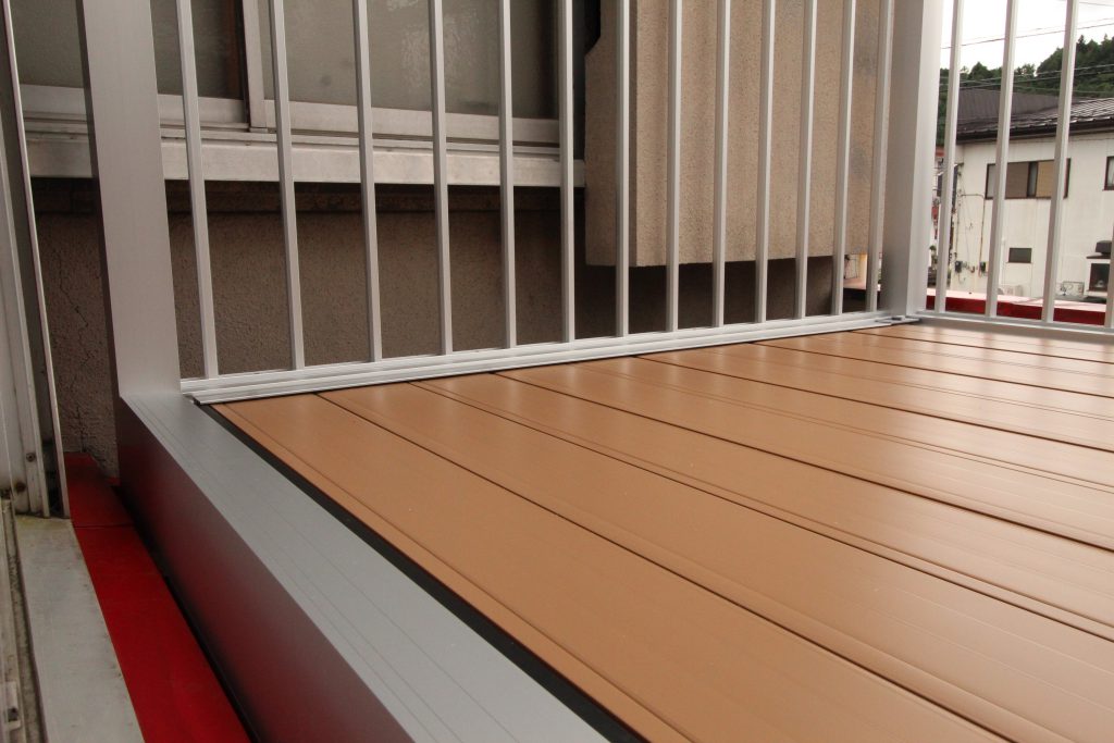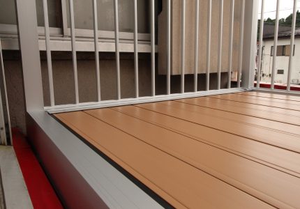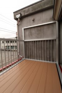 シンプルでスッキリとした【たて格子】はどんな住宅外観にもマッチし、抜けがよく光や風が多く取り入れられ、床材は【樹脂製デッキ材】で、耐久性に高く摩擦・色褪せにも強い!
