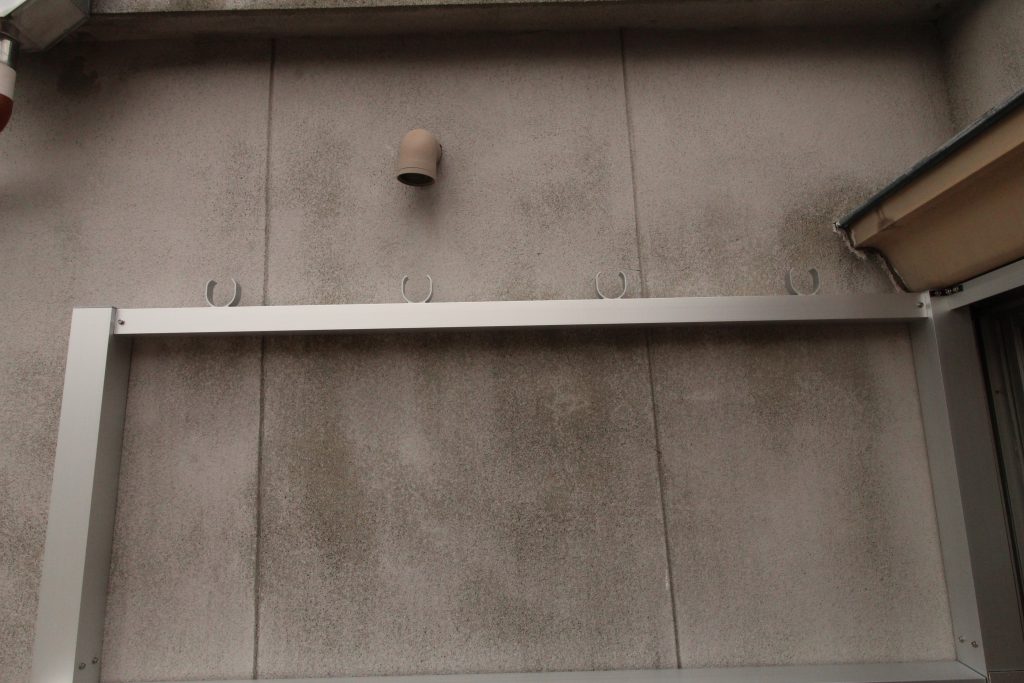 現調させていただき寸法など測りお客様のご要望を聞き打ち合わせを重ね、YKK AP『ルシアス バルコニー(屋根置式)』を納められるよう加工し取付けさせていただきました。