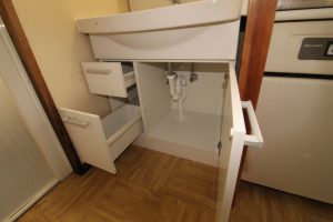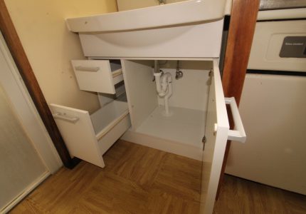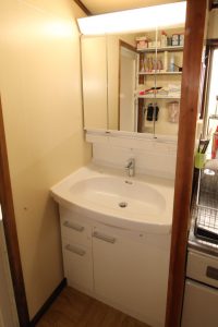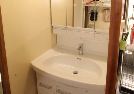 既存の洗面化粧台が古くなってきているので、新しい収納のあるものに変えたいとご依頼いただきました。