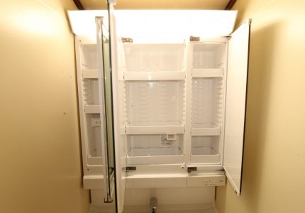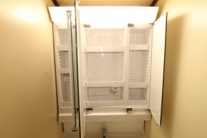 鏡裏はすべて収納になっているので、スキンケア用品やヘアーケア用品など、日常的に使用するものを収納でき大変便利!
