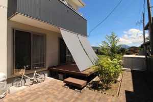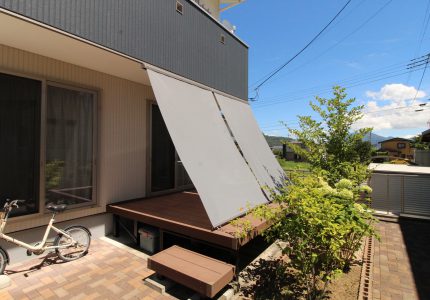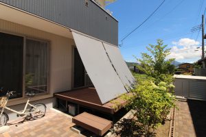 日が当たり室内が暑くなり、デッキも熱くデッキの上で過ごせないので何とかしたいとご相談いただきました。