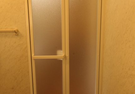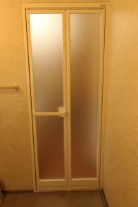 既存の浴室折戸の具合が悪く、開け閉めもしにくくなっているので新しくしたいとご依頼いただきました。