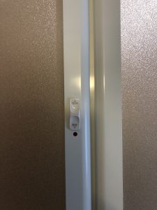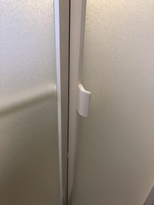 面材部は“ポリスチレン樹脂板”で割れても破片が飛散しにくく、また幼児が誤って浴槽に落ちるなどの事故を防ぐために、浴室側と脱衣場側から施解錠可能な“チャイルドロック”が取付けてあり安全性に配慮しています。