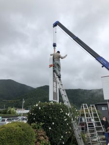 看板が古くなってきていて、近年の台風はとても強いので被害が出てしまう前に撤去したいとご依頼いただきました。