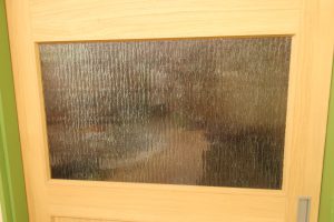 採光部には、安全性に配慮し割れにくく耐久性の高い【樹脂板】が使用されていて、アウトセット大開口引戸は【マット調】、片引き引戸は流れるような模様が繊細な印象を与える【レイン柄】が落ち着きのある空間をつくります。