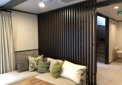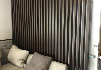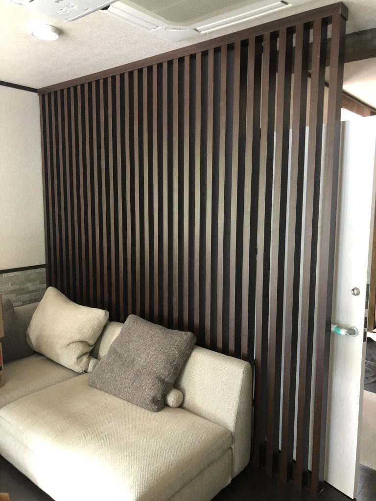 木製の物ではなくメンテナンスのいらない素材で、木目格子のデザインの間仕切りを取付けたいとご依頼いただきました。