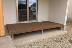 天然木と比較して耐候性・耐腐朽性・耐水性に優れている、YKK AP『リウッドデッキ200』を施工させていただきました。