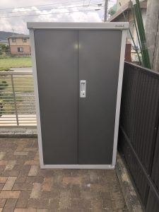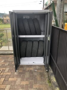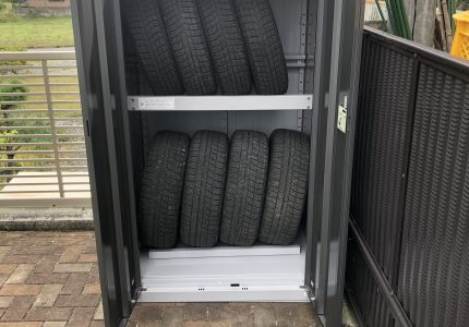 今までタイヤをビニールで保管していたが、盗まれたり風で転がったりしたら困るので、タイヤを収納する物置を置きたいとご依頼いただきました。