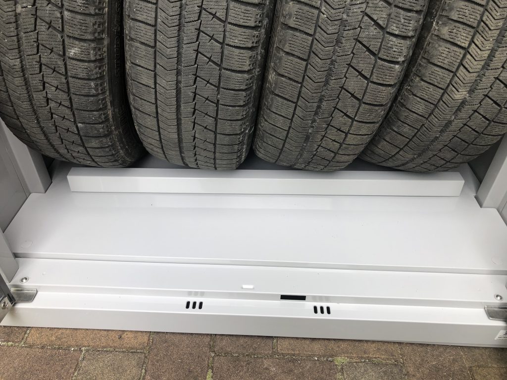 雨の日でも屋根上部の“フィン”が雨水の侵入を防ぎ、暑い夏場も換気口から熱を逃し庫内に熱がこもりにくく、しっかりタイヤを保管しておくことが可能です!