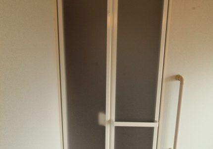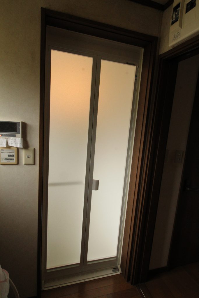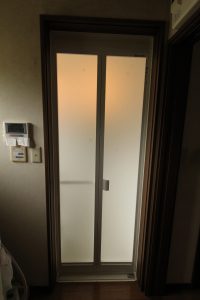 浴室の折戸が壊れてしまい、開け閉めするのに不便なので新しい物に変えたいとご依頼いただきました。