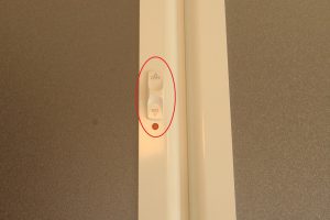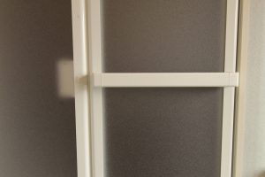 折戸の面材部は“ポリスチレン樹脂板”で割れても破片が飛散しにくく、また幼児が誤って浴槽に落ちるなどの事故を防ぐために、浴室側と脱衣場側から施解錠可能な【チャイルドロック】が取付けてあり安全性に配慮しています。