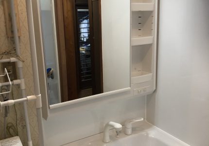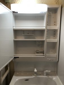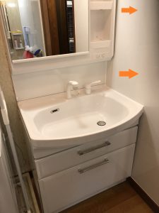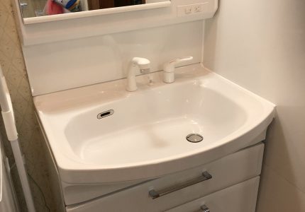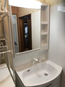 洗面化粧台が古くなり、収納スペースも少ないので新しくしたいとご依頼いただきました。