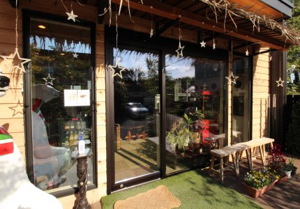 河口湖ヴィラ エフジェイリゾート様のフロント棟のドアを、YKK AP『アルミフロント商品 Fef 片引き自動ドア』で施工させていただきました。