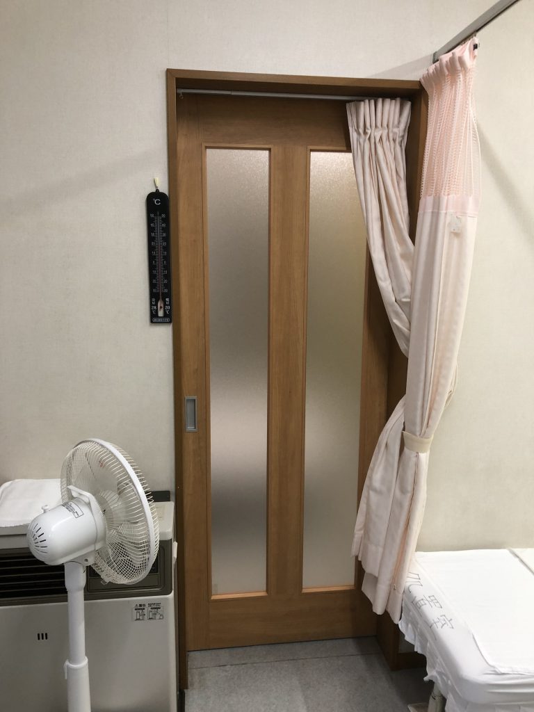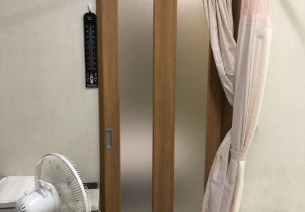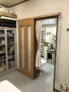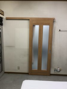 今まで部屋と部屋をカーテンで仕切っていたが、飛沫感染防止対策として壁などを壊さずしっかりした木製建具を取付けたいとご依頼いただきました。