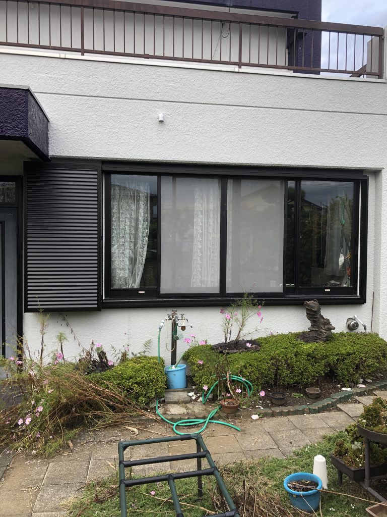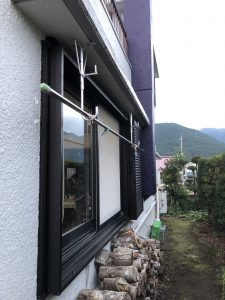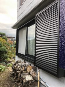 台風時に飛来物で窓が割れてしまったり強風で窓が揺れたりすると怖いので、雨戸を取付けたいとご依頼いただきました。