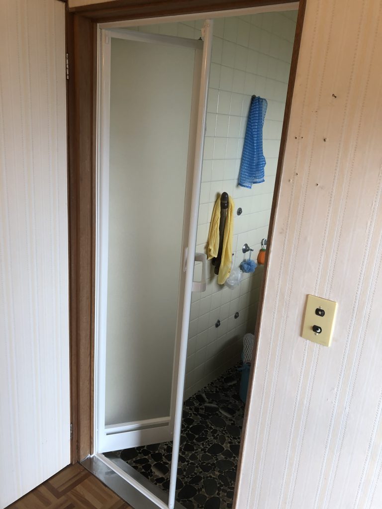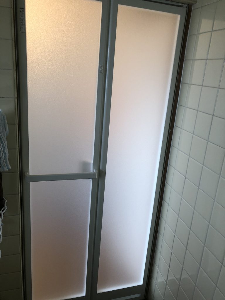 YKK AP『かんたんドアリモ 浴室ドア』を“リフォーム枠 四方アタッチメント工法”で取付けさせていただきました。