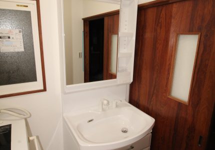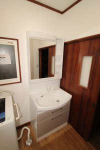 浴室をリフォームするのに壁も工事するので、脱衣場も一緒にキレイにしたいとご依頼いただきました。