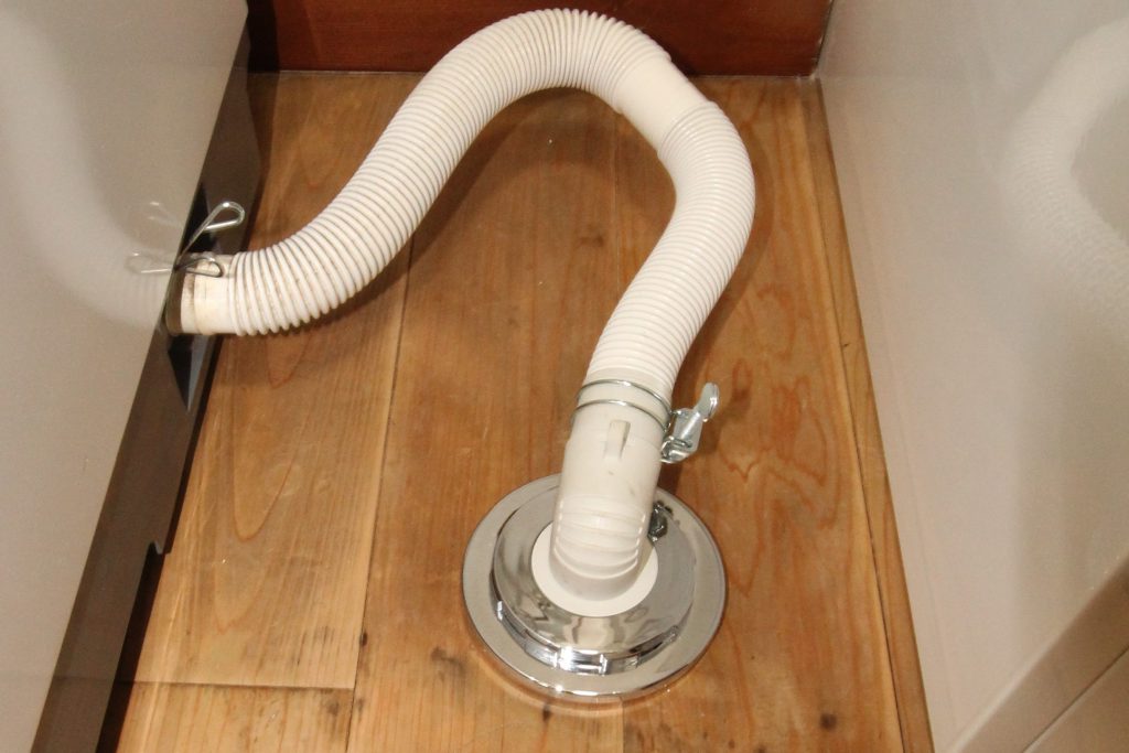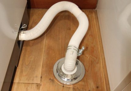 洗濯機の給水栓は万が一外れてしまっても水が出ないもの、排水トラップもニオイが上がってこないよう専用のものへ交換しました。