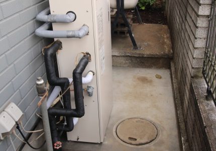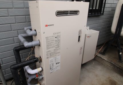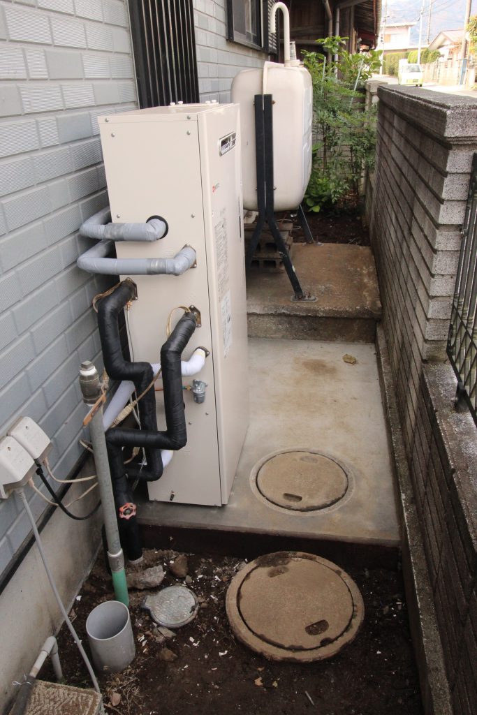 温水暖房機器も併用できるので、給湯器が霜で動かないように土間に設置したいとご依頼いただきました。