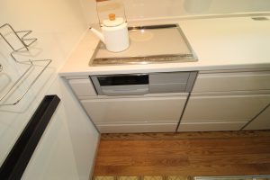 また手洗いよりも省エネになり高温で除菌できる食洗機は、シンク下に配置され水垂れせずお皿をセットでき、家事をラクにしてくれます。