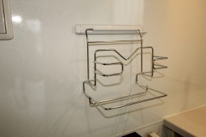 ホーローは鉄ベースなので“マグネット”が使え、お好みの位置に自由自在に収納が作れちゃう。