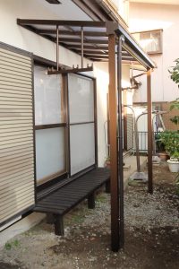 木でテラス屋根を作ろうと思っていたが、腐ってしまったり定期的に塗装しなければならないので、腐らず塗装も必要ないアルミ製のテラス屋根を設置してほしいとご依頼いただきました。