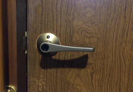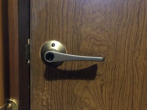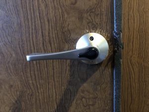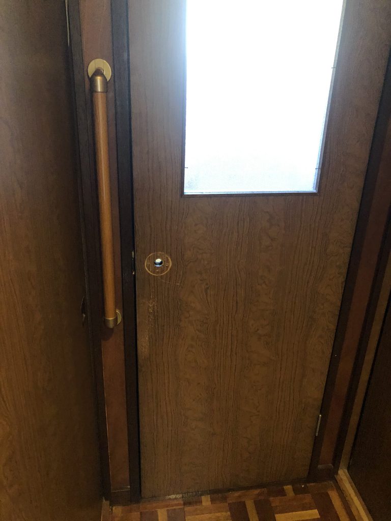 トイレのドアノブが建具から外れてしまったので、新しくレバーハンドルにしたいとご依頼いただきました。