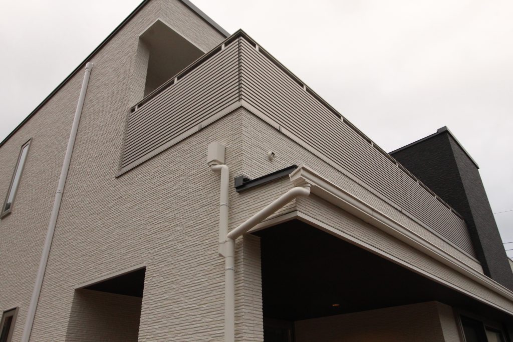 支柱を支える基礎の上に被せている仕上げ材の【笠木】は、壁や躯体を保護しダイレクトに雨水の侵入を防ぐ大切な役割を持ち、美観性を損なう雨だれを防ぎ住宅を長くキレイな状態で維持することができます。