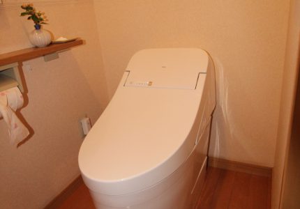 トイレから原因もわからず漏水していて、シャワートイレも壊れてしまっているので新しく交換したいとご依頼いただきました。