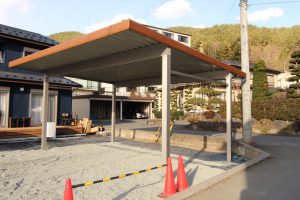 スチール折板屋根は積雪や強風に強いだけではなく、遮光効果も高く夏の暑い日の車内の温度上昇を抑えたり、冬の寒い日車に霜がつかなくなり、大切な車が汚れたり傷むのを軽減できます!