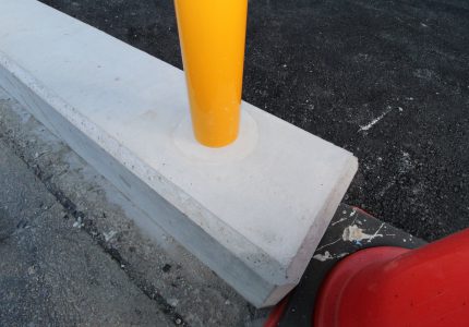 コンクリートにコア抜き工事を行い、支柱を埋めモルタルで固定しました。